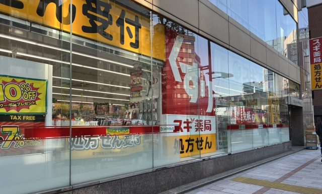 A3出口を出ますと「スギ薬局」さんが入っているビルに出ます。