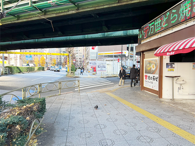 セブンイレブンの前の信号を渡りまっすぐ進みます。